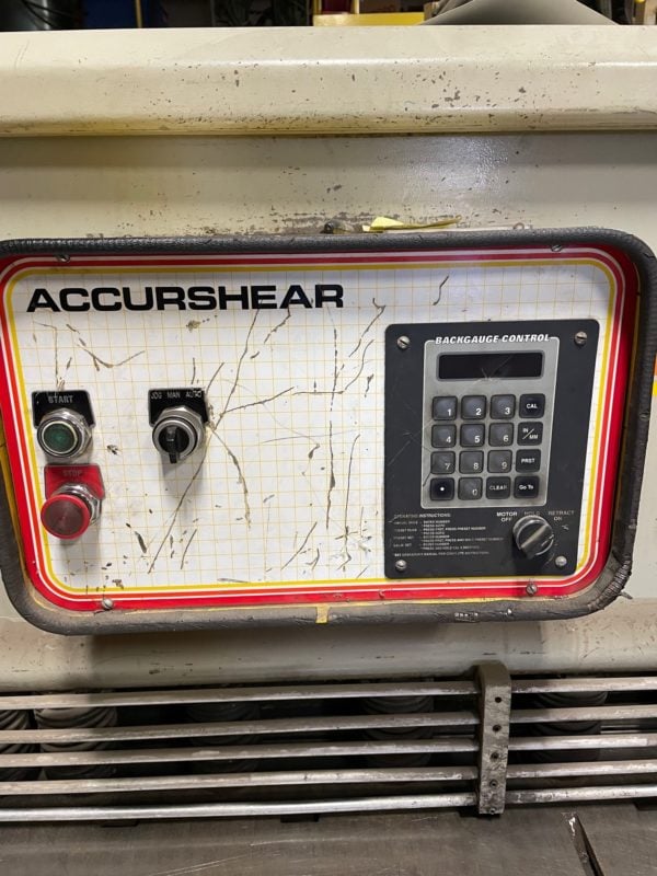 1/4″ x 10′ Accurshear Model 625010 Hydraulic Shear – W/Backgauge, Squaring Arm