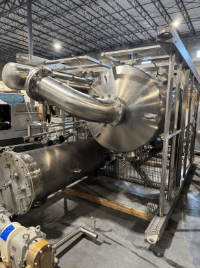 Constructed with stainless steel for product contact surfaces and mounted on dual stainless steel skids. Complete with platform, ladder, and stainless deck grating for operator access. Engineered for low-temperature, low-residence-time operation to minimize color degradation and fouling —ideal for sensitive food, protein, and slurry applications.