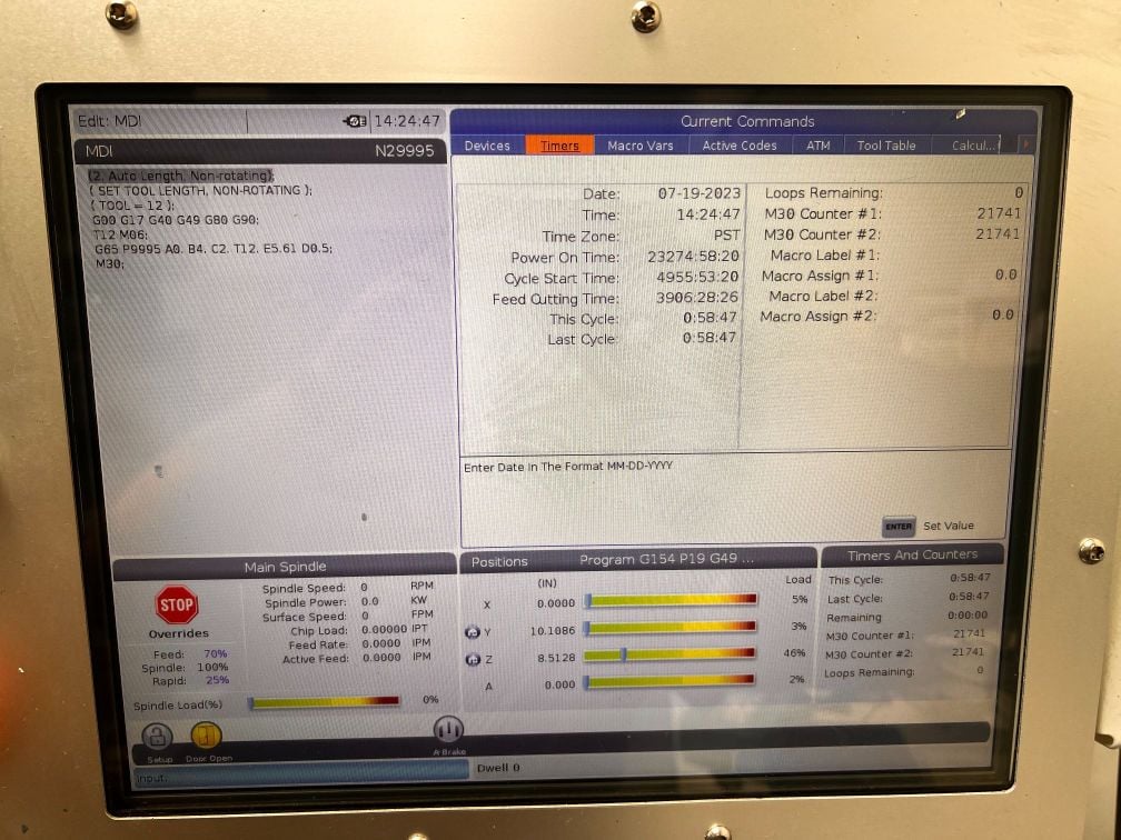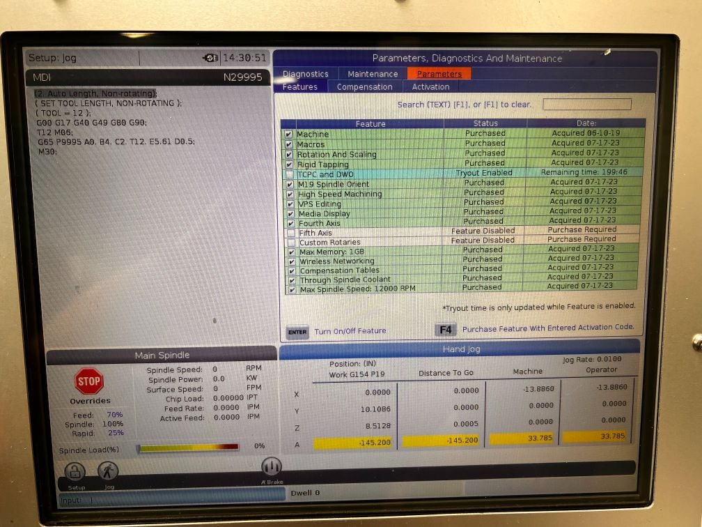 Haas VF-4SS VMC, 2019 – HRT-210 Trunnion, Probe, Coolant Thru Spindle