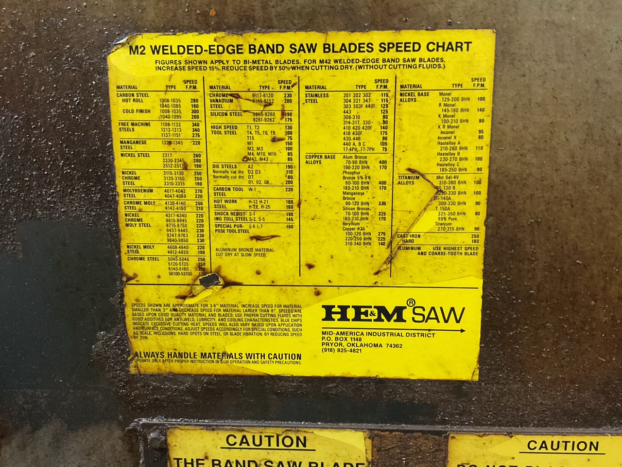 Blade Speed: Variable (Typically 60–400 Fpm)