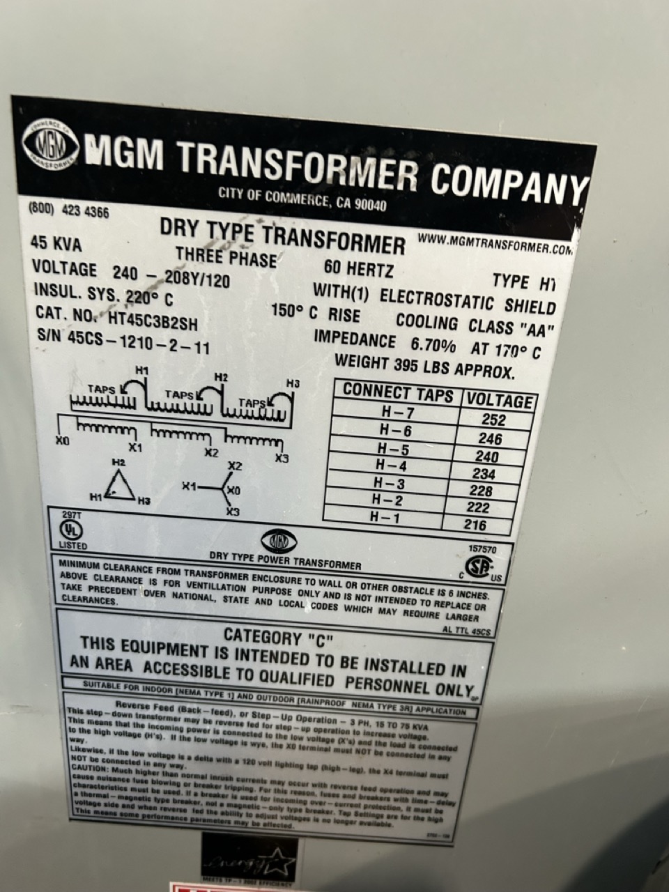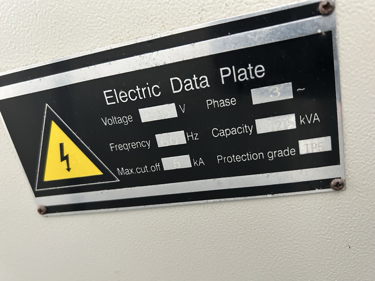 Electrical: 220V, 3-Phase