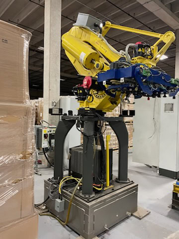 – Fanuc M-410iB robotic palletizer with stand.